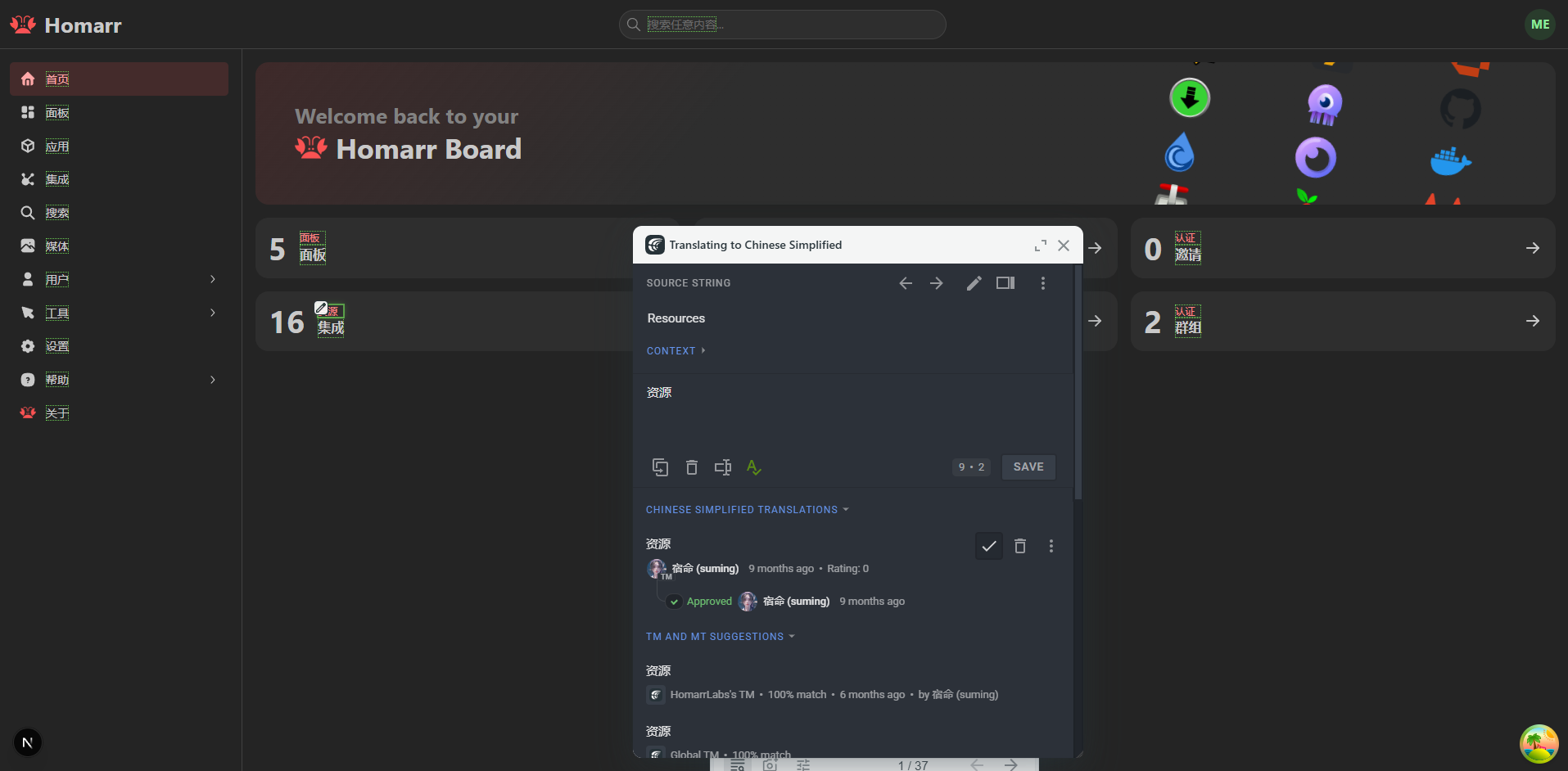 We want to make Homarr accessible for everyone. But to do that, we need your help. We are running a community program that enables everyone to translate Homarr into their language – no programming required. We are using Crowdin to manage our translations. You can find the translations here.